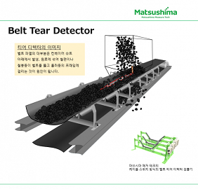 ※ Belt Tear detector 의 3가지 장점 : 1) 변환기를 통해 진동에 의한 오작동 문제 해결! 2) 케이블 터치 스위치가 불감대 문제를 해결! 3) 트러프 각도 조절 구조로 손쉬운 설치 공사! ※사용실적 : 제철소, 시멘트 공장, 발전소 등의 원료 반송 컨베이어 벨트 등