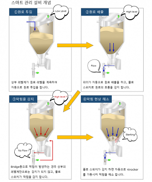 마이크로파 플로 스위치라면 막힘을 감지하여 필요할 때에만 Knocker을 가동할 수 있습니다.