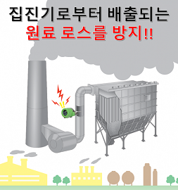 ※ 더스트 모니터의 3가지 장점 : 1) 백필터 파손으로 인한 원료 손실 절감 ▶ 생산성 향상 2) 소모품인 백필터의 교환시기의 적정화 ▶정비비 절감 3) 누출 사고로 인한 대기 방산 방지 ▶ 환경 대책