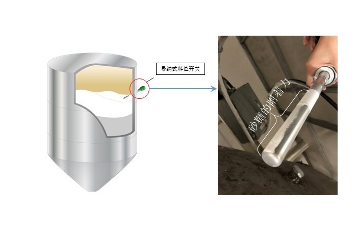 一般的电容式料位开关不适用于粘性材料。 由于松岛导纳式料位开关具有保护电极,可防止附着产生的噪声, 因此即使在感测棒上堆积了某些材料,它也能可靠地正常检出。