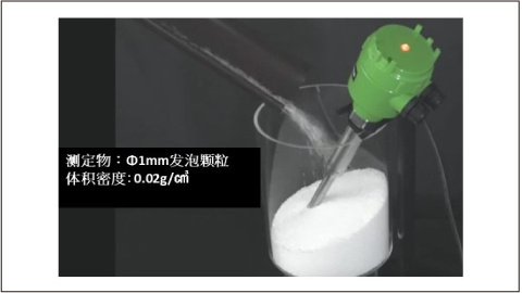 发泡颗粒的验证测试 如此轻的东西也能检出! 世界最高等级的灵敏度的振动式料位开关的实力来测试发泡颗粒的检出。